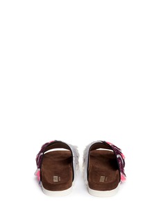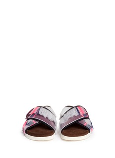 Sculpted with an artful mix of palettes, textiles and textures, these sandals from MSGM deliver a bold and playful attitude for resort styling. Featuring a criss-cross front band and cleverly accented with colourful fringes, this pair is fortified with a moulded suede footbed and a sturdy rubber outsole for longlasting comfort.