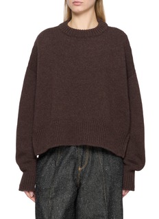 Wrap yourself in the cosy embrace of this NACKIYE sweater, a perfect blend of style and comfort. Crafted from sumptuous wool, this piece features a rich chocolate hue that complements any autumn or winter palette. Its relaxed silhouette with drop shoulders offers a modern take on classic comfort, while the ribbed detailing at the neckline, cuffs, and hem adds a touch of texture and ensures a snug fit.