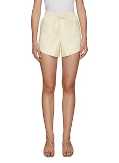 These Janna shorts by Nanushka feature a split, elasticated waistline for a sporty appearance. Detailed with a round hem, the pair is rendered in light beige vegan leather to compliment your neutral-coloured separates.