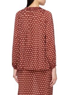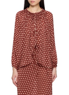 Natalie Martin’s Elise top exudes bohemian ease with its fluid drape and delicate tie details. Crafted from lightweight fabric, it features a ruffled neckline and three front ties for a romantic, free-spirited charm. Wear it closed as a blouse or open as a breezy layering piece.