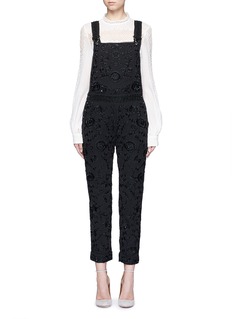 Change up your wardrobe with this floral jumpsuit from Needle & Thread that take centre stage with its bead and sequin embellishment. Raising textural delight to new heights with additional embroidery, this georgette number channels an accent of Victorian styling with its apron-like bib front. Classic dungaree fasteners and adjustable shoulder straps secure this piece as a dependable go-to with beyond-average styling.