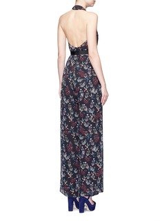 Channel springtime ease all year long in this airy jumpsuit from Nicholas. Made in filmy silk crepe to put a diaphanous sway in every step, this wide leg number leads eyes along the plunging neckline and revealing back, while the accompanying sash teases out a tapered figure for a demure yet arresting vision.