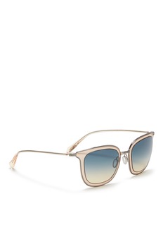 Bringing laid-back visuals back with 1960's bohemian influences, Oliver Peoples' Annetta sunglasses mark a stylish, simple foundation in a square frame. Upswept in brushed metal and acetate-wrapped temples, this pair references structural perfection with silicone nosepads and rimmed front for sturdy focus.