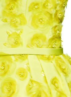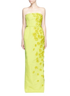 Reworking eveningwear with old-school glamour, Oscar de la Renta's exemplary feminine aesthetic shows through this strapless column gown. Crafted from silk faille and detailed with beaded organza floral embroidery, this structured one follows brilliant springtime flavour with a vibrant charteuse hue.