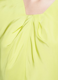 Adopting a season-neutral silhouette for easy pairing, this top from Oscar de la Renta crops up sophisticated charm with structural appeal. Cut with a narrow squared neckline that is emphasised by a centre pleat, this silk twill piece is made in Italy and stands out in a vibrant chartreuse hue.