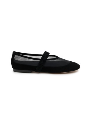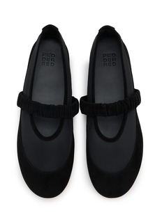 Pedder Red reimagines the Mary Jane with a quietly modern interplay of textures—soft suede framing sheer mesh for a whisper-light silhouette. The ruched elastic strap adds a touch of ballet elegance, making this pair an easy companion to fluid dresses or tailored separates.