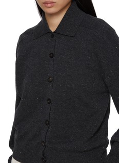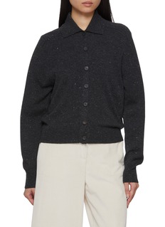 Refined yet effortless, this Peserico cardigan is crafted from a luxurious blend of virgin wool, silk, and cashmere with a subtle metallic fleck. Its shirt collar and button-up front evoke understated tailoring, making it an elegant day-to-evening essential.