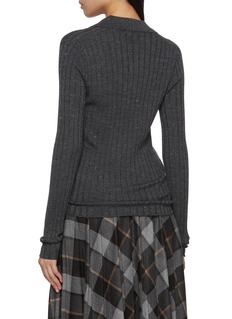 PESERICO Slim Fit Ribbed Wool Blend Knit Polo Top