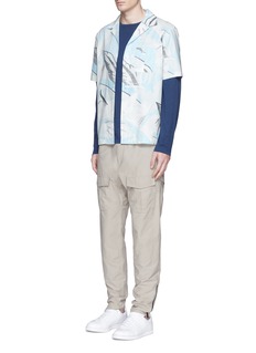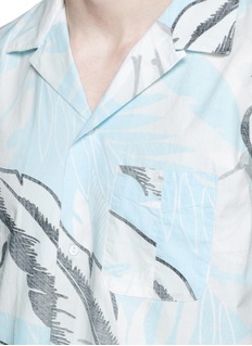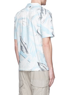 Play with artistic sensibilities in this leaf print Kingston shirt from rag & bone. Evocative in a washed-out tropical motif, this cotton top is constructed with the fabric's print side facing inward for a unique satorial statement. Carved with a spread collar, this one is fastened by way of metal buttons coated in matte white for distinctive touch.
