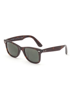 Ray-Ban lends its iconic silhouette a modern update, featuring a tortoiseshell effect acetate square frame in a timeless brown colourway to complement your various edits. This pair is punctuated by grey lenses and a metallic logo plaque at the temple for a branded flair.