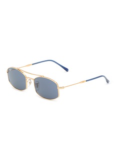Capture the essence of classic cool with these Ray-Ban aviator sunglasses. The iconic gold frame is perfectly complemented by blue temple tips and matching blue lenses, offering a fresh take on an enduring style. Ideal for trendsetters looking to add a dash of color to their sunny day essentials.