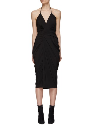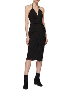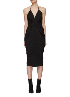 This Laura midi dress from Rick Owens sets itself apart with a silky veneer with a cinched waist to flaunt a feminine allure. Detailed with a halter neck, the unique piece is graced with a wrapped construction with ruched detail to promise a figure-flattering fit.