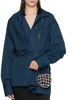 Dive into the world of luxury with Rosantica's crystal embellished heart clutch, a true masterpiece of design and elegance. This stunning accessory showcases a heart-shaped silhouette enveloped in lush black velvet, overlaid with a dazzling grid of silver-tone crystals. The intricate crystal chain strap adds a layer of sophistication, making it perfect for high-profile events and elegant evenings. This clutch combines romance with glamour, offering an unforgettable addition to your accessory collection.