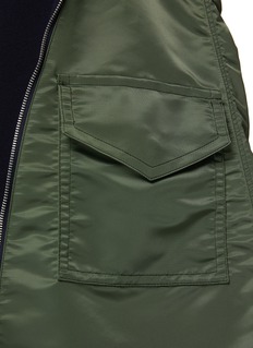 This Sponge Sweat X MA-1 dress is a reflection of sacai’s coveted deconstructed aesthetics, accented with contrasting side panels as a nod to the iconic MA-1 flight jacket. Cut into a relaxed silhouette and rendered in a subdued hue, this piece can elevate your everyday ensembles with a subversive touch.