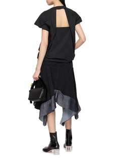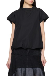 Defined by sculptural restraint, this sacai top refines classic poplin with a softly padded cap-sleeve silhouette and a striking open-back detail. The clean front balances the unexpected reveal, making it an elegant statement piece suited to modern daywear or elevated evening styling.
