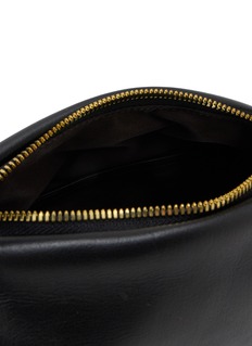 This pochette merges urban functionality with contemporary contrast, pairing a sleek leather base with gold-toned hardware for an added touch of luxury, while the compact size and structured shape make it ideal for effortless, everyday style. A versatile statement piece for the modern wardrobe.