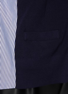 SACAI NAVY BLUE Stripe Shirt Panel Cotton Knit Cardigan