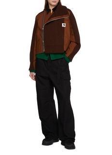 sacai's collaboration with Carhartt WIP redefines utilitarian style, merging the rugged functionality of Carhartt's iconic duck fabric jackets with sacai’s innovative design elements. This pair is cut into a relaxed fit with a belted waist for enhanced utility on the classic cargo style.
