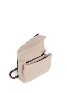 Rediscovering tough-meets-glam aesthetics, this Monogram Collège bag from Saint Laurent sets up a new form of structure with its careful matelassé stitching. Retaining its iconic antiqued hardware in the interlocking logo and chunky curb chain strap, this semi-glossed lambskin leather carryall is executed for compact handling with its divided accordion compartment and functional alternatives of wear.