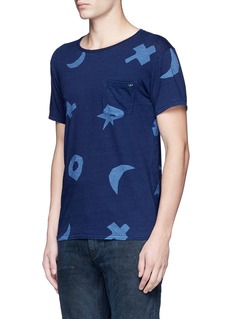 Adopting one of Scotch & Soda's signature techniques, this symbol print T-shirt is indigo dyed for a rich blue shade. It is finished with twisted side seams so it sits closer to the body, creating a flattering slim fit.