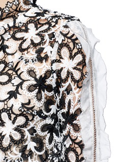 Embracing a rich, graphic look, self-portrait renders it season-to-season appropriate with monochromatic hues in this Line top. Cut with a short stand neck for structural appeal, this floral guipure lace one is subtly trailed with organza ruffles and signature fagotting for a dignified appearance.