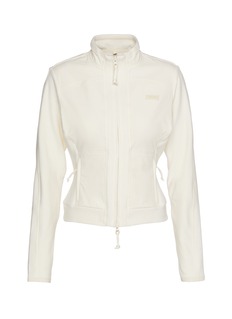 Cosy, cool, and collected. Featuring our midweight polar fleece and contrast panels, this fitted zip-up brings plush softness and sporty edge to your winter uniform. Features a sleek mock neck, relaxed sleeves, and cozy side pockets for ultimate comfort. Finished with a silicone SKIMS logo patch at the chest, this style hits below the natural waist and fits true to size.