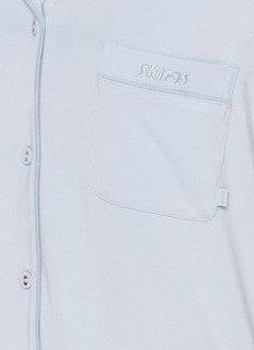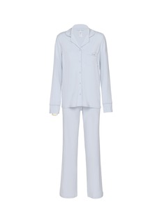 Your old pyjamas can’t compete with this soft, ultra-comfortable sleep set. Features a slightly oversized button-up top with long sleeves, a chest pocket, and piping details. The straight leg pants have a relaxed fit and a stretchy waistband with an adjustable interior drawstring.