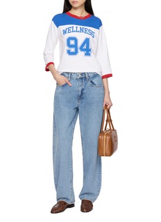 Channelling retro athletic energy, this Sporty & Rich football top captures the spirit of classic collegiate sportswear. Cut from soft cotton in a T-shaped silhouette, it features bold contrast panels and varsity-style lettering — an effortlessly nostalgic piece for relaxed weekend dressing.