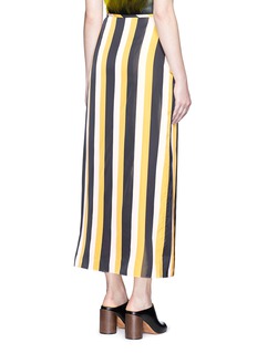 Driven by feminine sinuous lines, Stella McCartney presents a dynamic woman engaged in the now. Beguiling in yellow, white and navy blue stripes, these billowy pants are delicately draped with an asymmetric hem that sculpts your body with pervasive elegance.