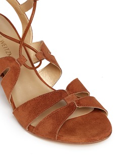 Drawing eyes upwards along the zigzagging straps and glinting hardware, these Grecian gladiator sandals from Stuart Weitzman will be a favourite in the fashion arena. Softly cobbled in supple suede and easily secured by lace-up and back zip fastenings for maximum convenience, this knee-high pair will add a confident swing to your stride.