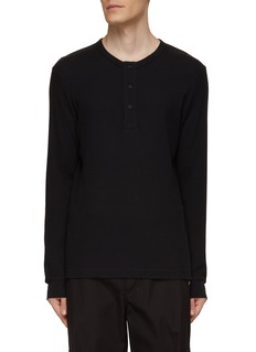 Crafted with care and attention to detail, this T-shirt features a waffled fabric that adds a touch of texture and visual interest. Whilst the Henley-style neckline with its buttoned placket adds a casual yet refined touch.
