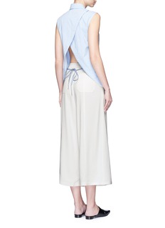 Mapping out contemporary directions for AW16, T by Alexander Wang crafted this sleeveless shirt from cotton poplin and exhibits classicism via a button placket and point collar for a clean and streamlined look. Seemingly ordinary at the front, this style simultaneously strikes attention with an open surplice back and self-tie waist for an extra dose of sensual attitude.