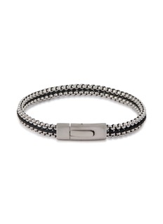 Step into the spotlight with Tateossian's Bracelet, featuring an intricate interplay of silver and black chains. This sophisticated accessory combines polished stainless steel with a textured black finish, secured with a streamlined clasp for a seamless look. Ideal for adding a modern twist to any outfit, this bracelet is a must-have for those who value elegance with an edge.