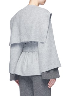 Impeccably polished and understated, this Draley jacket from The Row is intrinsically made in marled grey alpaca-virgin wool fabric with a felted finish. Decidedly urban with an oversized cape collar, this one is made in America with a detachable self-tie waist sash to define your frame.