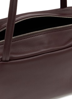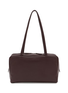 The Row redefines elegance through restraint with the Astra shoulder bag, rendered in smooth dark red leather. This softly structured silhouette, zipped for security, brings a subtle nod to vintage bowling shapes while offering sharp functionality. Perfect for polished office ensembles or understated travel elegance.