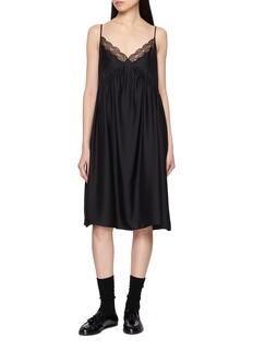 Discover the allure offered by The Row's Barett dress in black. This piece with a V-neck is highlighted by its lace trim. A perfect standalone piece, pair this with sleek loafers.