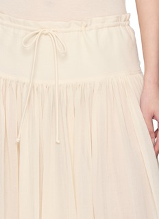 The Berenice pants by The Row redefine effortless elegance with their flowing, wide leg silhouette and soft, creamy fabric, offering a timeless blend of comfort and sophistication. The drawstring waist and gentle gathering create a relaxed yet polished look, perfect for understated luxury.