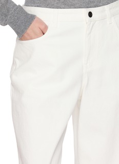 Cut with The Row’s quiet precision, this jean is shaped in crisp cotton denim for a clean, elongated line. The fluid straight-leg silhouette moves effortlessly between pared-back tailoring and everyday ease—ideal with knitwear, shirting or minimalist flats.