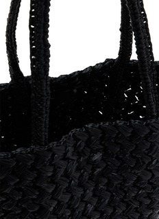 The Estelle Two tote bag by The Row exudes effortless sophistication with its intricate woven raffia and organic, rounded silhouette. The braided handles and natural texture create a timeless, artisanal charm, perfect for adding a touch of relaxed elegance to any ensemble.