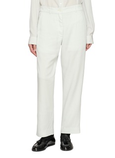 A study in fluid restraint, these pants express The Row’s nuanced approach to modern tailoring. The silhouette falls straight with a gentle drape, balancing structure and softness for effortless day-to-evening versatility.