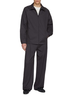 The Row channels a refined utilitarian mood in this crisp gabardine jacket. Its structured lines and rich brown hue introduces quiet depth. A transitional layer with a minimalist spirit, ideal for grounding tailored or off-duty looks.