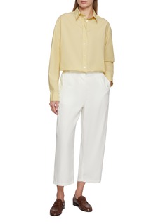 Introducing The Row's Quinto Pants, a masterpiece of relaxed elegance. These trousers feature a relaxed, cropped leg and a pleated front for a touch of classic sophistication. Complete with flap pockets, they're ideal for a polished yet comfortable daytime look.