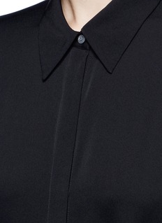 Transforming a classic silhouette with a knotted detail, Theory injects an unruly edge to the traditional shirt dress. Delicately made in black midweight silk georgette, this style is eclectically adorned with sashes which can be tied at the skirt front for definitive elegance.
