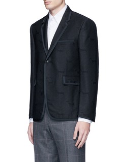 Appearing as embroidery, jacquard or print, Thom Browne's very own sausage dog Hector becomes the main inspiration for AW16. Tailored in a slim fit to change the proportion of classic suiting, this Italian-made blazer makes a mark on quality with slightly padded shoulders and interlining.