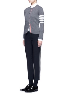 Coveted for its dandy aesthetic, Thom Browne sets the standard for modern prep with this cardigan. Exquisitely crafted in Scotland from pure cashmere and stamped by white stripes, this top features a three-button side split hem which can be left undone for a chic twist.