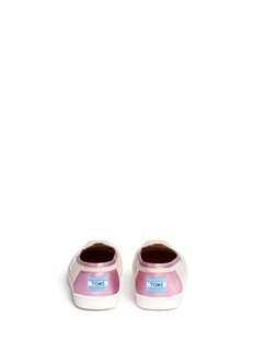 Marking an adorable twist to the original grown-up style, these Youth Classic slip-ons from TOMS boast a tactful contrast of textures to kickstart your tot's wardrobe with a contemporary appeal. Pronounced with glittery stripes and metallic leather to pack a stylish punch, this pair is well-revised for better structure with a newly improved rubber cushion to benefit growing feet.