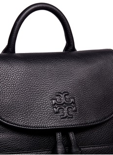 Imbued with contemporary charm, this Thea leather backpack from Tory Burch upholds the collection's sleek aesthetics with impeccable everyday functionality. Staying iconic with two decorative tassels and an embossed front logo, this carryall has a plenty of interior and exterior pockets to keep your gadgets and essentials neatly organised.