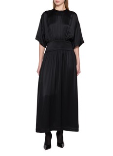 Infused with Scandinavian spirit, TOTEME shapes soft silhouettes with character. This satin dress is designed with a defined waist and a flowing skirt that moves with ease. Its half-sleeve cut adds lightness, and styled with minimal accessories, it embodies Nordic cool elegance.