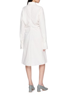 Embrace minimalist elegance with TOTEME's impeccably tailored pieces, designed for the modern woman who values sophistication and simplicity. Defined by its ruched waist, this shirt dress imbues a unique touch to your day-to-day looks.