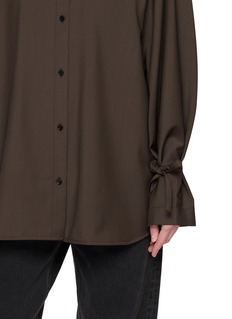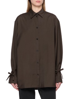 Embodying Scandinavian aesthetics, TOTEME shapes modern Nordic style. This shirt offers a tie-sleeve design that softens the silhouette and a relaxed fit for ease. Its draped texture adds depth, and when styled with black jeans, a leather bag, and pointed heels, it exudes a cool, effortless sensibility.